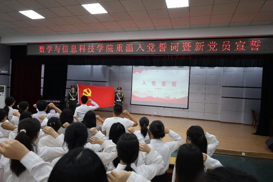 2024年7月1日,数学与信息科技学院“七一”新党员宣誓仪式暨党纪学习教育专题党课在秦皇岛校区多功能厅举行。学院党委书记、副书记、各学生党支部书记和全体学生党员参加活动。