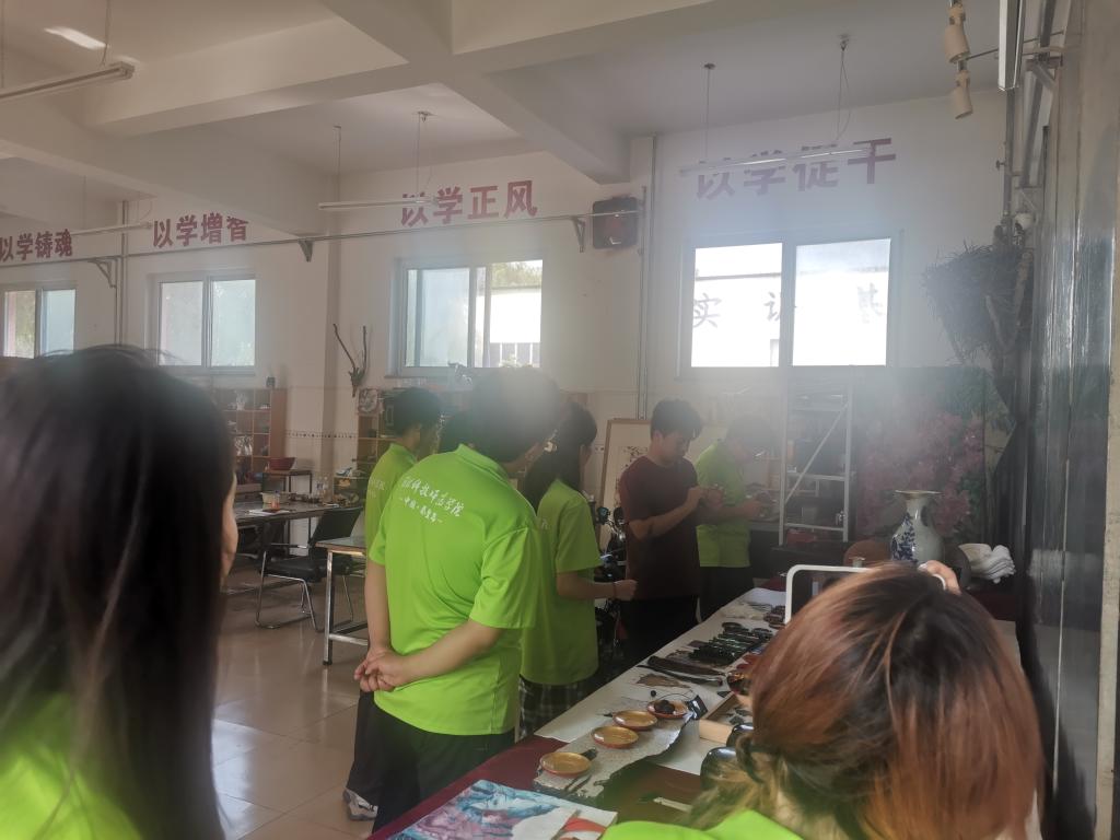 实践队员在通假字大漆艺术创新工作室参观大漆艺术品