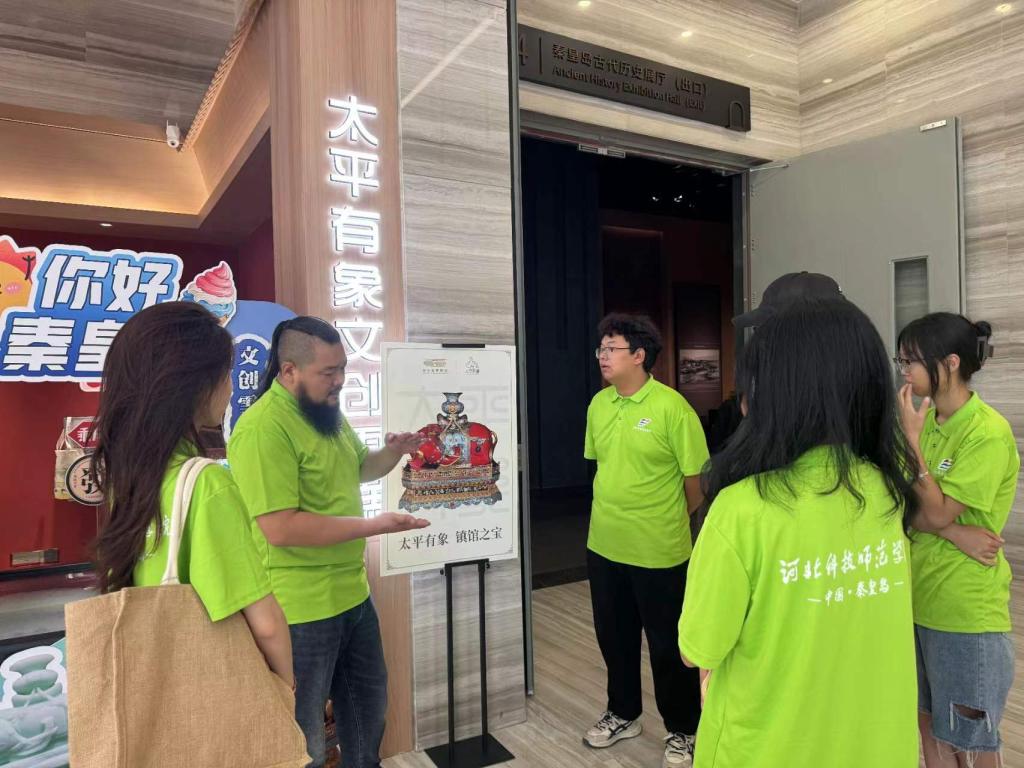 指导教师向团队成员讲述秦皇岛博物馆文创产品的各方面优势