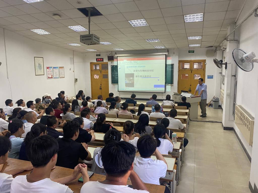 2024年9月3日,农学与生物科技学院举行了2024级新生家长座谈会。学院党政领导、各教学部主任、教师代表、新生班主任和近100位新生家长参加会议。本次会议以线上线下相结合的方式进行。