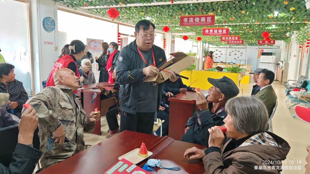 在此次重阳节主题活动中,下沉工作队还紧密与青龙县益善行公益服务中心党支部取得联系,达成了一起传承和一致弘扬中华传统节日文化的理念,积极号召村部、社区、服务中心党员发挥先锋模范作用。“益善行”服务中心主任杜成章还为村民耐心讲解了中华优秀传统文化特别是重阳节的丰富内涵,并结合塔沟村老人们的实际情况,分享了一些既可以陶冶身心又有益于健康的文化活动趣闻。他还说下沉工作队精心为人民服务的做事风格感动了他,他非常愿意后续不断地与塔沟村村两委和工作队协商对接,一片赤诚地为全体村民服务。