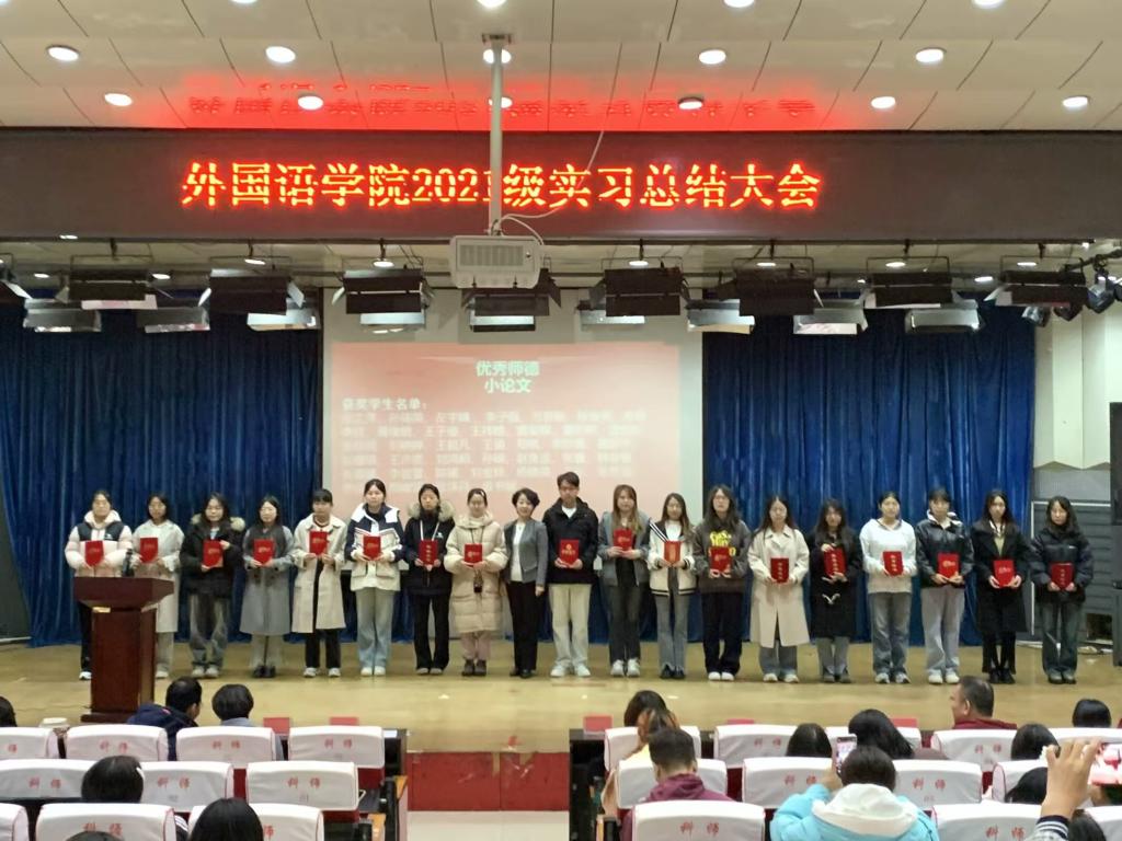 2024年10月22日,外国语学院2021级英语学生教育实习总结暨颁奖大会在开发区校区报告厅举行。外国语学院领导班子成员、英语教学部主任、学工办主任、实习指导教师和辅导员及2021级全体学生参加了大会。