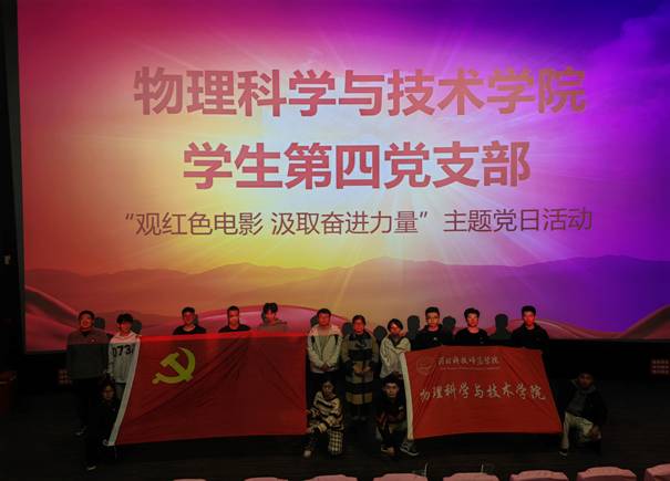 2024年11月2日,物理科学与技术学院为厚植爱国情怀,凝聚奋进力量,勇担新时代使命,扎实开展学院“双创”工作,学院党委组织学生第一、第四党支部党员和优秀积极分子前往秦皇岛市博纳国际影城开展了主题党日活动,观看了爱国主义影片《志愿军:存亡之战》。