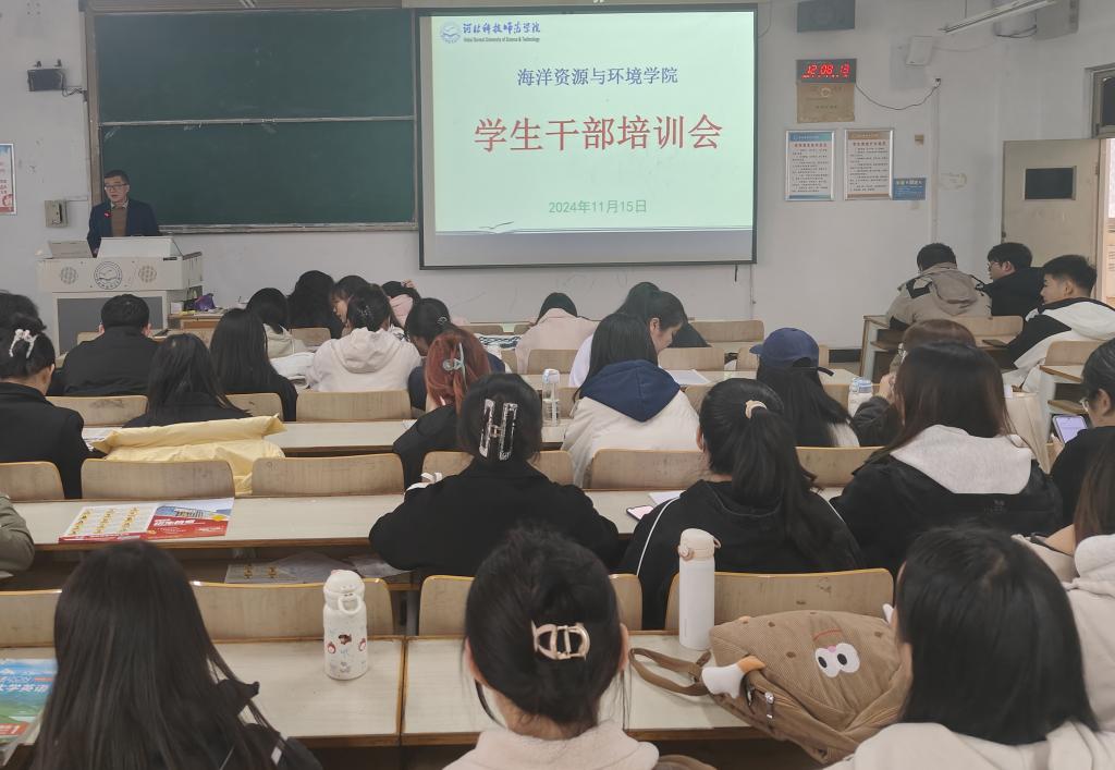 2024年11月15日,海洋资源与环境学院召开学生干部培训会议。全院各专业班级班长、副班长、团支书等80余人参加会议,学工办、团委负责同志、专职辅导员出席会议,会议由学院学生工作负责同志主持。