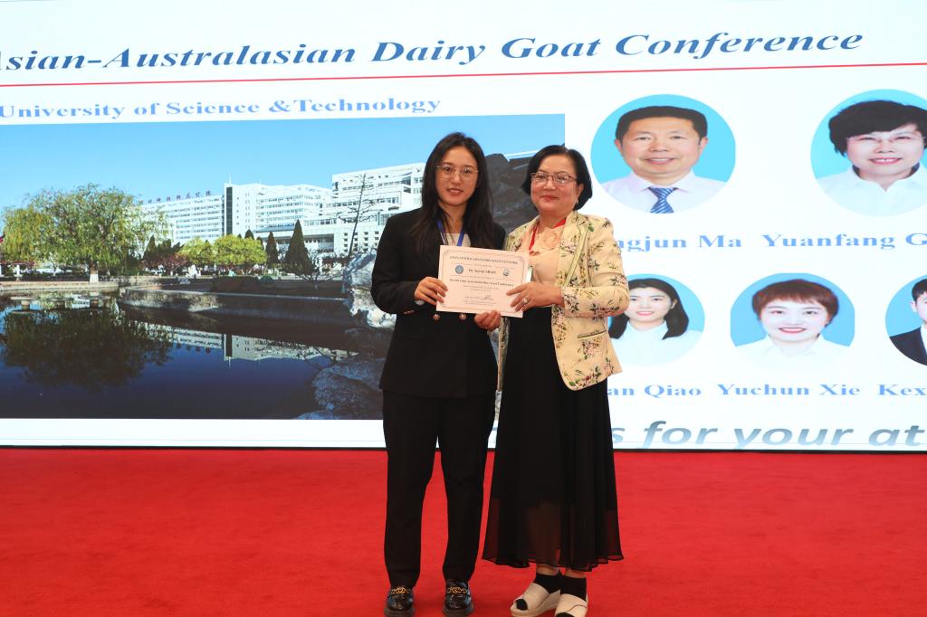 2024年11月20日到24日,由西北农林科技大学主办的“第六届亚澳奶山羊大会”于陕西杨凌召开。来自全球10个国家的170多位专家学者、企业行业代表参会,共同探讨奶山羊产业的最新研究成果和未来发展方向。本届论坛的主题是“奶山羊绿色养殖与优质羊奶生产”。完美网页版动物科技学院青年教师邵钺馨博士参加论坛并作“Function and regulation mechanism of CTCF on lactoferrin synthesis in dairy goat”大会报告。