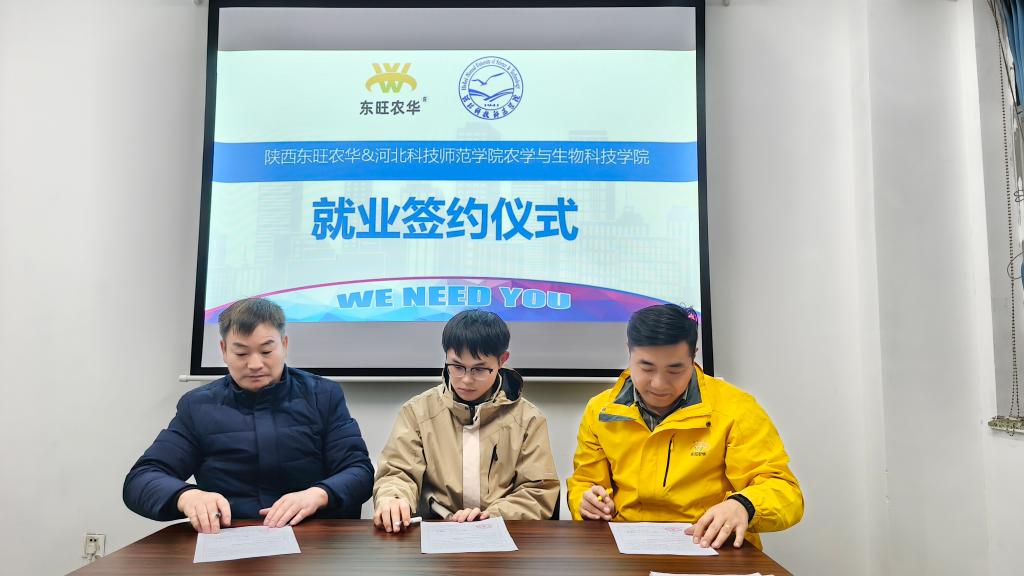 近日,农学与生物科技学院和陕西东旺农华生物科技有限公司举行2025届毕业生就业协议签订仪式。