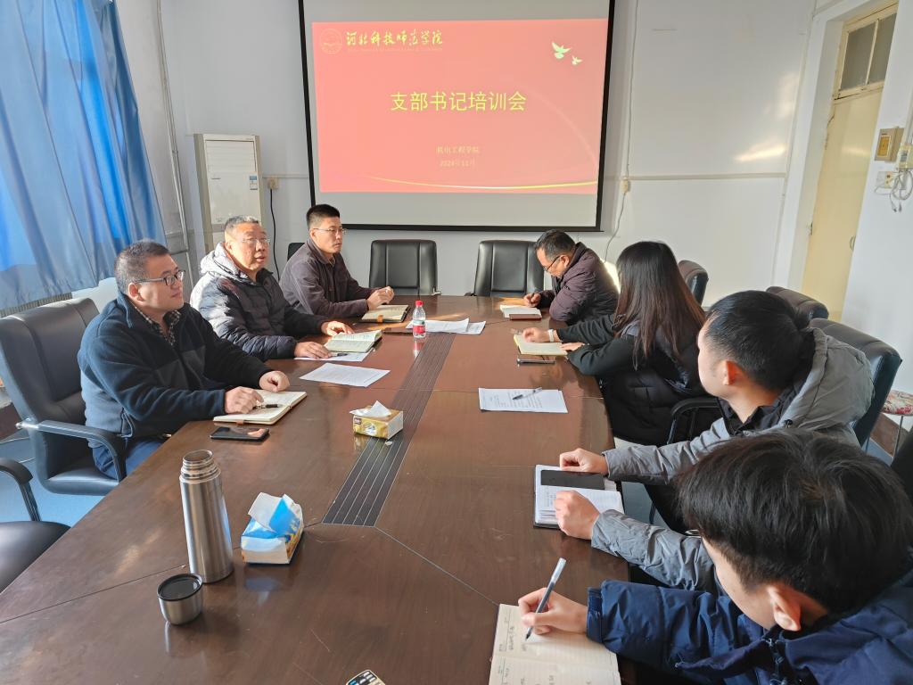近日,机电工程学院在学院四楼会议室开展了党支部书记培训,全体师生党支部书记参加了此次培训。