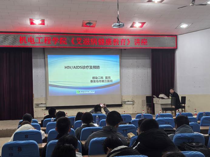 2024年12月11日,机电工程学院邀请了秦皇岛市第三医院感染二科主任苗亮团队,在昌黎校区学术报告厅举办了大学生艾滋病健康教育讲座。昌黎校区各二级学院领导、师生代表共500余人参加了活动。