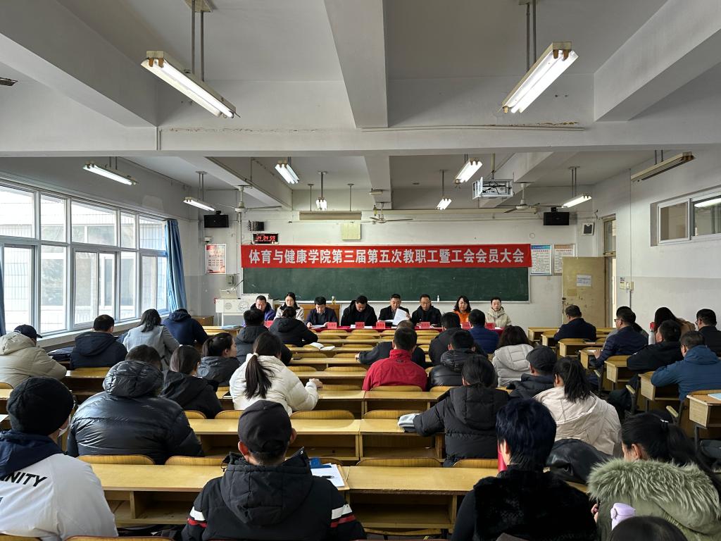 2024年12月26日,体育与健康学院在秦皇岛校区召开第三届第五次教职工大会暨工会会员大会,学院全体教职工参加了会议,会议由学院党委副书记王海军主持。大会听取并审议通过体育与健康学院2024年度《行政工作报告》、《学院财务收支情况报告》、《工会工作报告》和《工会经费使用情况报告》。