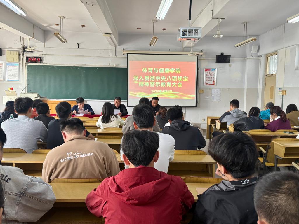 2025年5月8日,体育与健康学院召开深入贯彻中央八项规定精神学习教育警示教育大会。学院党委领导班子成员及全体师生党员参会,会议由学院党委负责同志主持。