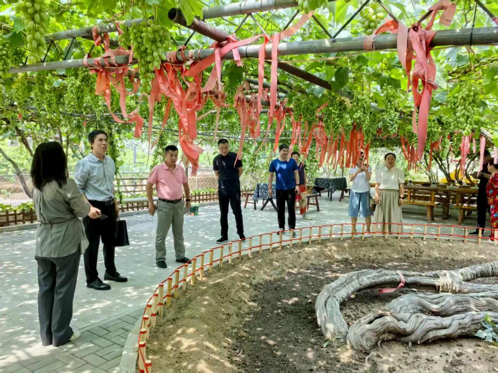 会后,一行人来到十里铺乡条子峪村党群服务中心和百年树凰农家院进行实地考察,详细了解十里铺乡特色葡萄产业发展情况,感受十里铺乡特色“葡萄经济”的魅力。
