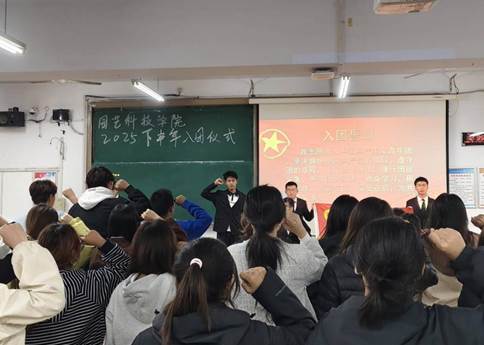 2025年10月17日,园艺科技学院举行新发展团员入团仪式。学院团委负责人、学生会成员和51名新发展团员出席了本次活动。