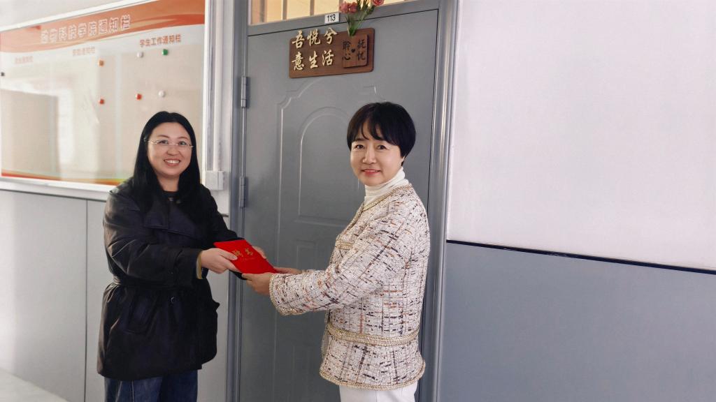 仪式现场,学院领导为捐赠校友颁发感谢证书,并正式聘任其为“校外心灵导师”。该校友将结合自身职业经历与人生经验,通过线上分享、线下座谈等形式,为学生提供成长规划、心理调适等方面的指导,搭建起校园与社会衔接的心理健康支持桥梁。