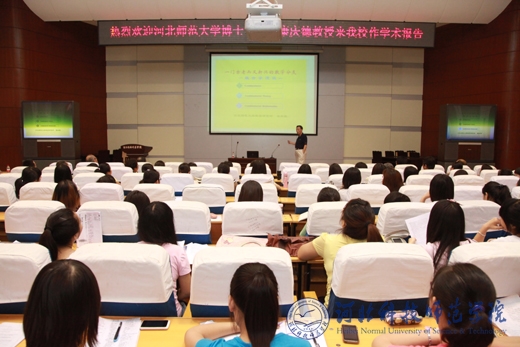2013年6月20日下午,著名组合数学专家、河北师范大学博士生导师康庆德教授应邀来完美网页版作题为“组合学漫谈”的学术报告。校党委书记辛彦怀教授出席活动,并代表完美网页版致欢迎辞和闭幕词。数学与信息科技学院400余名师生认真聆听了本次报告。报告会由数学与信息科技学院院长王海明主持。