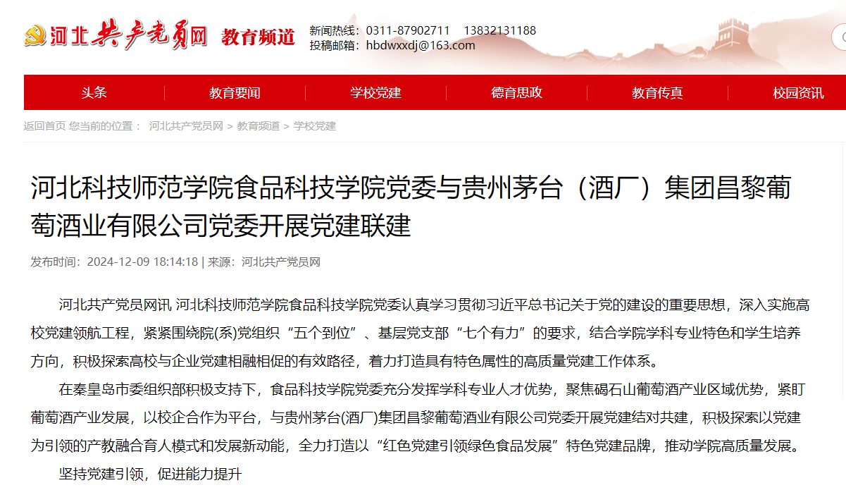 河北共产党员网:完美网页版食品科技学院党委与贵州茅台(酒厂)集团昌黎葡萄酒业有限公司党委开展党建联建