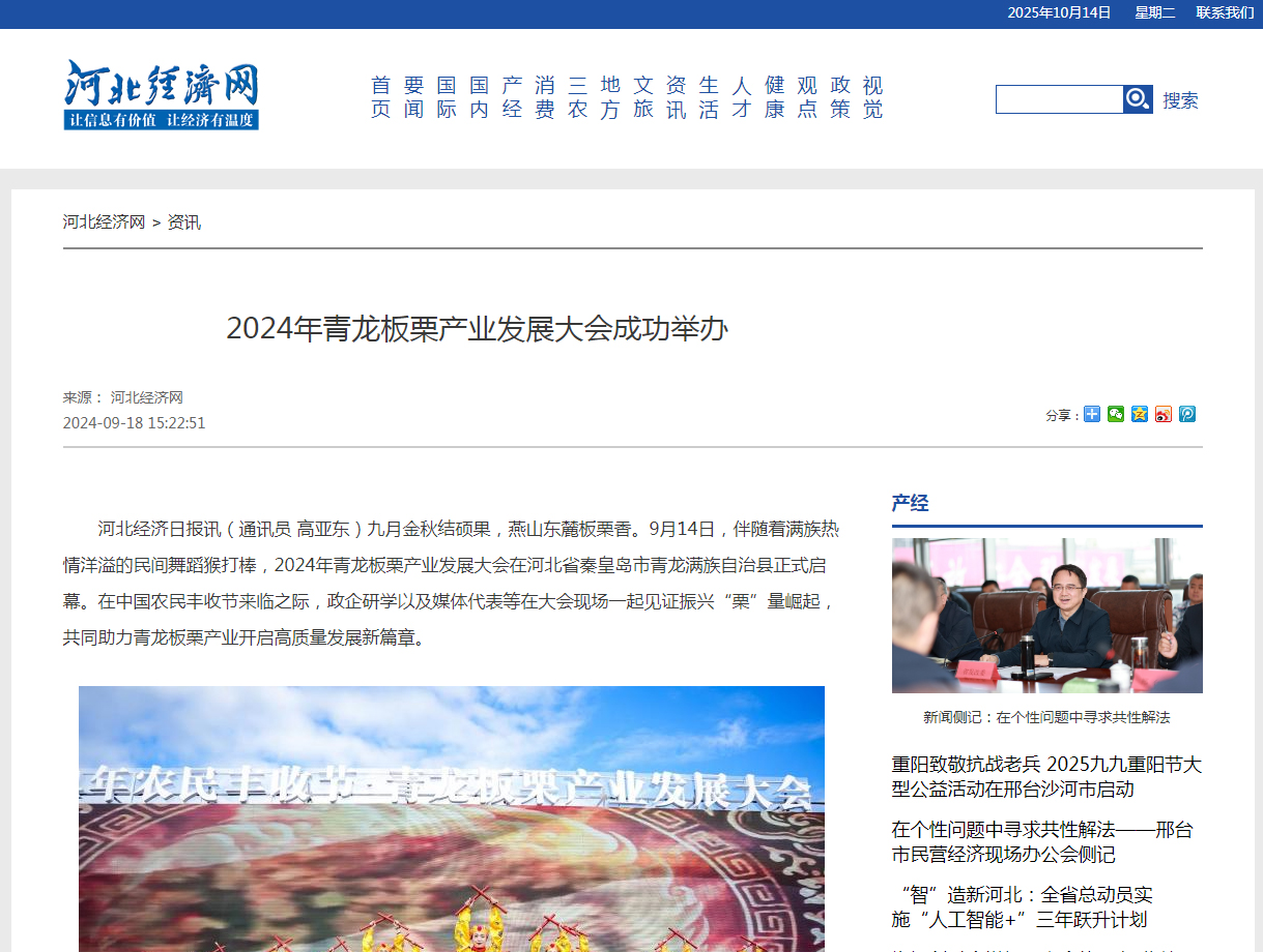 10.142025河北经济网:2024年青龙板栗产业发展大会成功举办【乡村振兴研究中心】