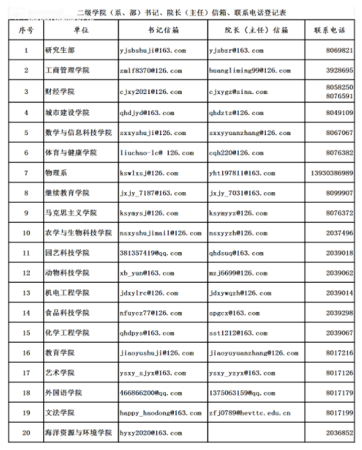 二级单位信箱电话